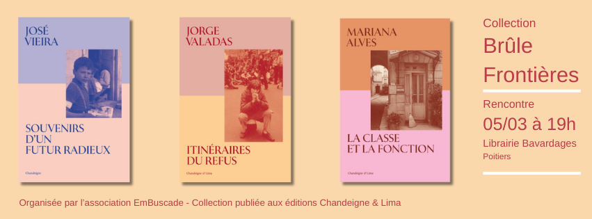 La collection Brûle-Frontières et ses auteurs seront à l’honneur. Issue du catalogue Chandeigne & Lima, cette collection met en lumière des voix de l’entre-deux, nées de l’immigration lusophone en France. Elle fait entendre des textes encore peu visibles en littérature, pour interroger une histoire complexe et transgénérationnelle, et s’affranchir enfin des clichés. Les ouvrages "Souvenirs d’un futur radieux" de José Vieira, "Itinéraires du refus" de Jorge Valadas et "La classe et la fonction" de Mariana Alves seront présentés. La rencontre se déroulera en présence de José Vieira, Jorge Valadas, ainsi que des deux directrices de collection, Ana Maria Torres et Mylène Oliveira Contival.