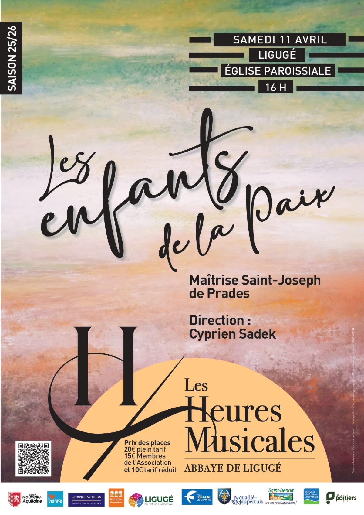 Dans le cadre de sa saison musicale 25/26, Les Heures Musicales de l'abbaye de Ligugé accueillent le concert Les enfants de la Paix de la Maîtrise Saint-Joseph de Prades (Pyrénées-orientales) dirigé par Cyprien Sadek. Organisé par l'association des Amis de l'abbaye de Ligugé.