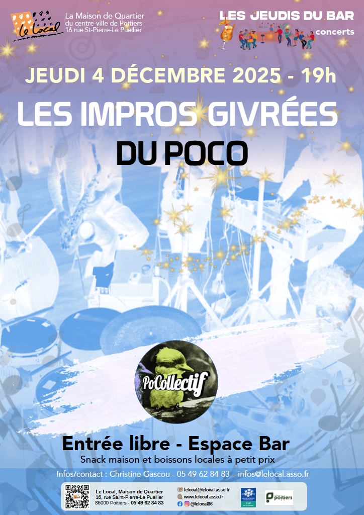 Rens : Entrée libre. Boissons & snacks maison à petit prix. Info animation@lelocal.asso.fr - 05 49 62 84 83