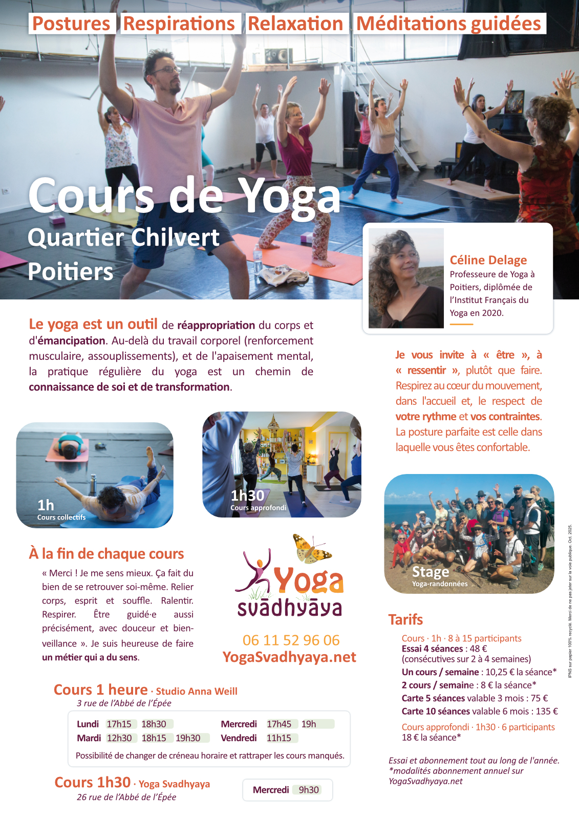 Rens : Tarifs COURS et STAGE YOGA RANDONNEES site : yogasvadhyaya.net celine@yogasvadhyaya.net 0611529606