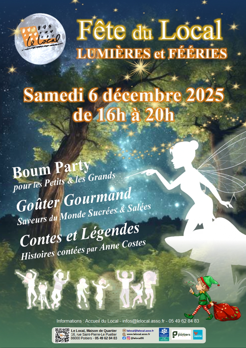 Le Local vous invite à une fête de quartier placée sous le signe de la féérie. De 16h à 20h, douceurs salées et sucrées, contes et légendes par Anne Costes, boum party et bien d'autres surprises dans un décor de lumières...