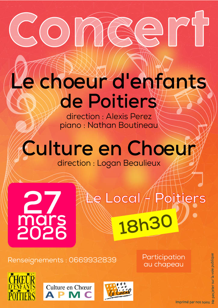 Rens : tarif libre contact: lechoeurdenfantsdepoitiers@hotmail.fr