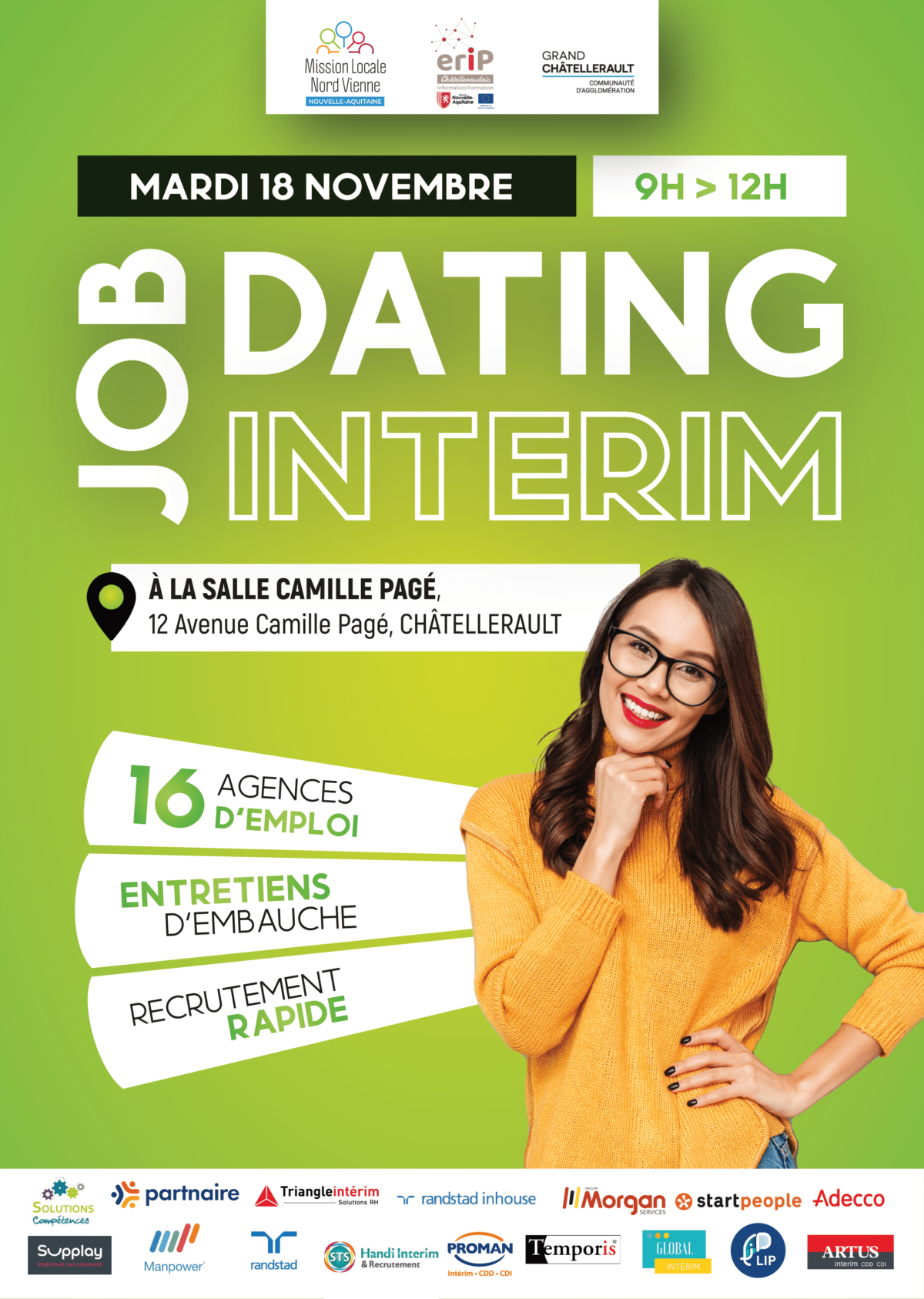 En un même lieu, 16 agences d'emploi (intérim) réunies et disponibles pour faire passer des entretiens de recrutement, sans présélection ! Venez à leur rencontre et décrochez un poste ! Les agences présentes* ont de nombreuses offres d'emploi à pourvoir sur le territoire du Grand Châtellerault. Que l’on cherche un job dans l'industrie, le bâtiment, le commerce, le social / santé, l'hôtellerie-restauration, le transport, la logistique... les recruteurs seront à l'écoute de tous les profils. Il sera possible de passer autant d'entretiens qu'il y aura d'agences : il faut donc venir muni de plusieurs CV. La Mission Locale et l’Espace Régional d’Information de Proximité tiendront des stands d’information pour donner des conseils CV, orienter le public, parler recherche d’emploi, formation ou même réorientation.