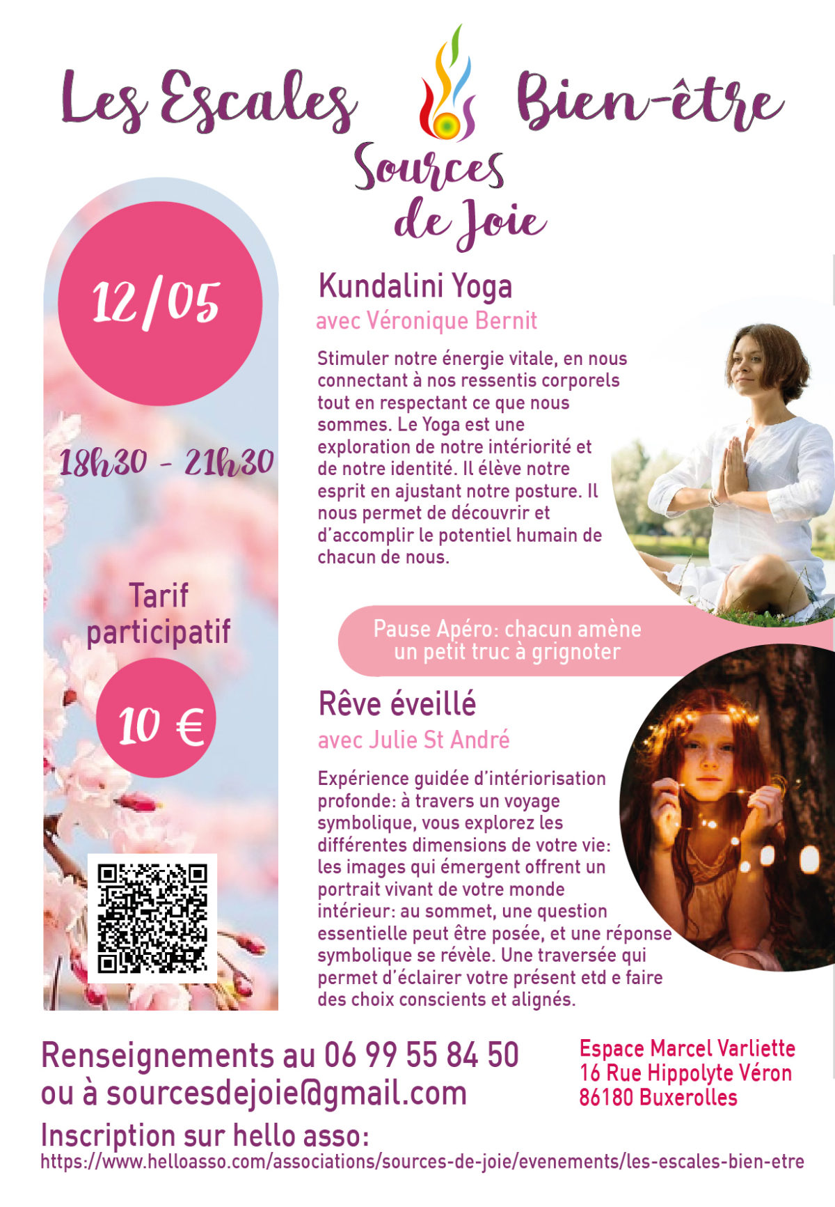 Rens : Renseignements au 06 99 55 84 50 ou à sourcesdejoie@gmail.com Tarif 10 euros