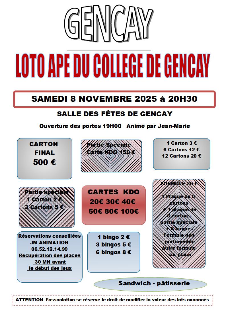 Loto de l'APE du collège de Gençay
