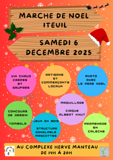 TOUS A VOS AGENDAS : MARCHE DE NOEL A ITEUIL LE 6 DECEMBRE 2025 DE 14H à 20h🎄🎁🎅 NOUS VOUS ATTENDONS NOMBREUX.