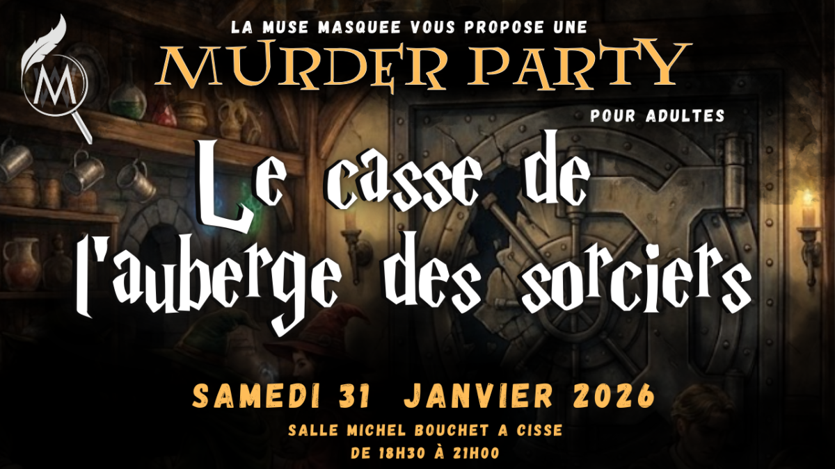 Nous vous invitons à participer à une murder-party immersive et originale, inspirée de l’univers du petit sorcier à lunettes, où enquête, jeu de rôle et intrigues seront au rendez-vous. Pendant 2h, incarnez un personnage, nouez des alliances, usez de vos pouvoirs… et tentez de découvrir la vérité.