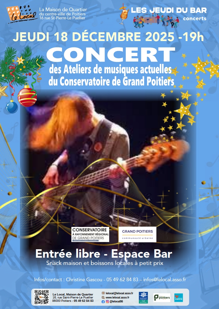 Jeudi 18 décembre 2025 - 19:00Le Local - Espace Bar - 16 rue Saint-Pierre-Le Puellier - 86000 - Poitiers