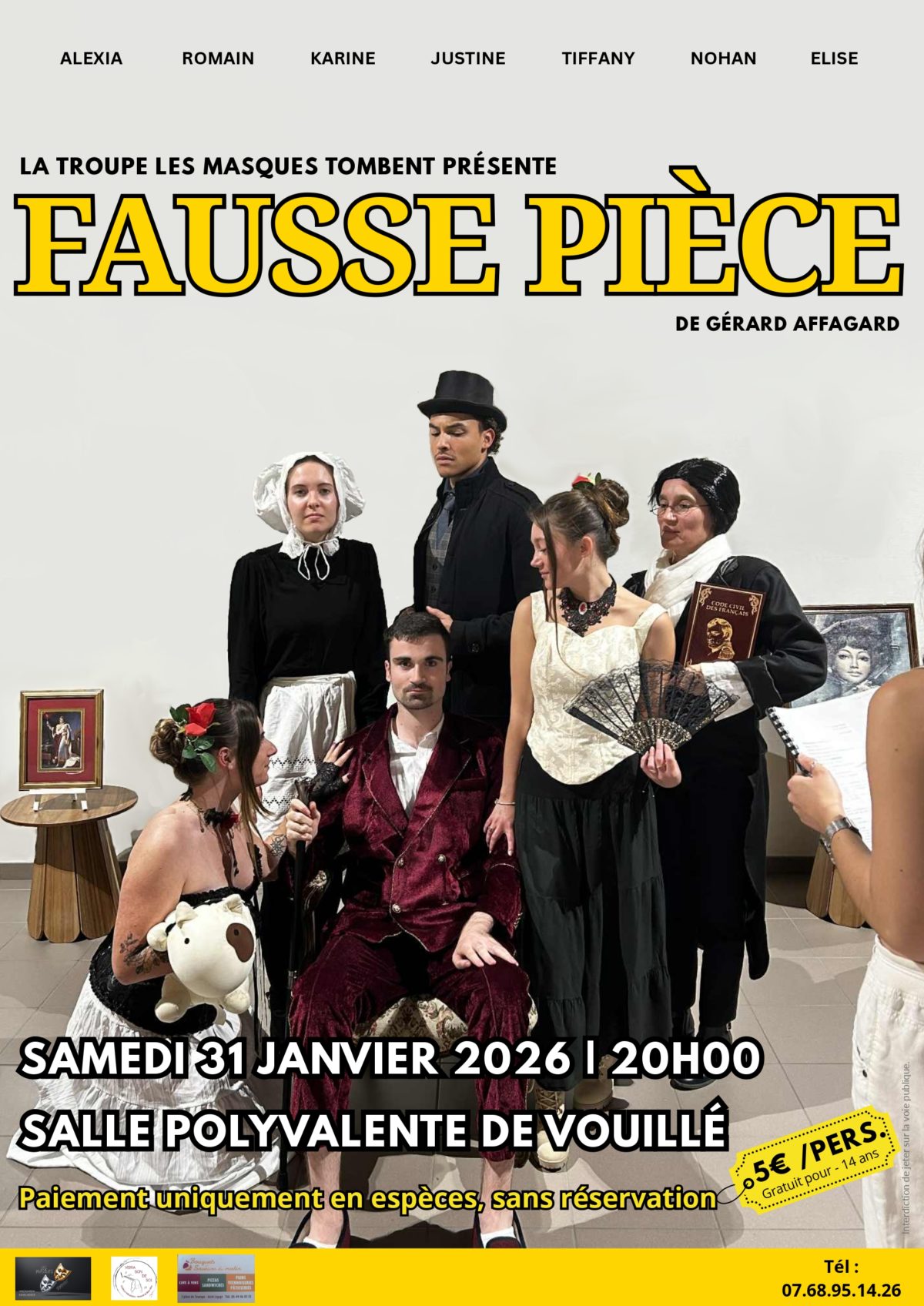 Rens : lesmasquestombent86@gmail.com 07 68 95 14 26 Billetterie : voir page facebook les masques tombent