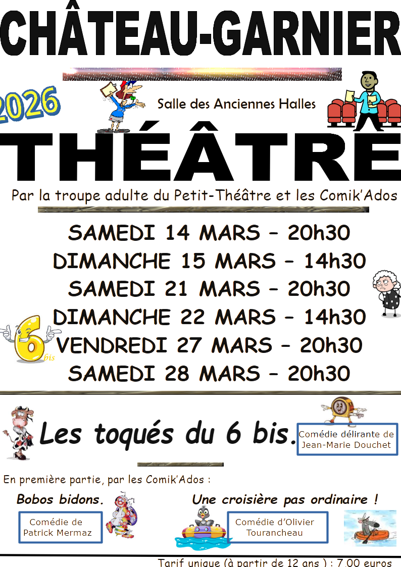 Rens : Contact : theatre-chateau-garnier@gmx.fr Tarif unique (à partir de 12 ans) : 7 euros