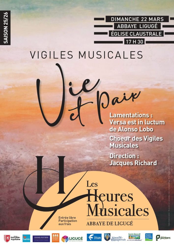 Le Chœur des Vigiles Musicales, sous la direction de Jacques Richard, interprétera "les Lamentations : 'Versa est in luctum'" d'Alonso Lobo. Le concert est proposé par l'association des amis de l'abbaye de Ligugé, dans le cadre de la saison 25/26 des Heures Musicales.