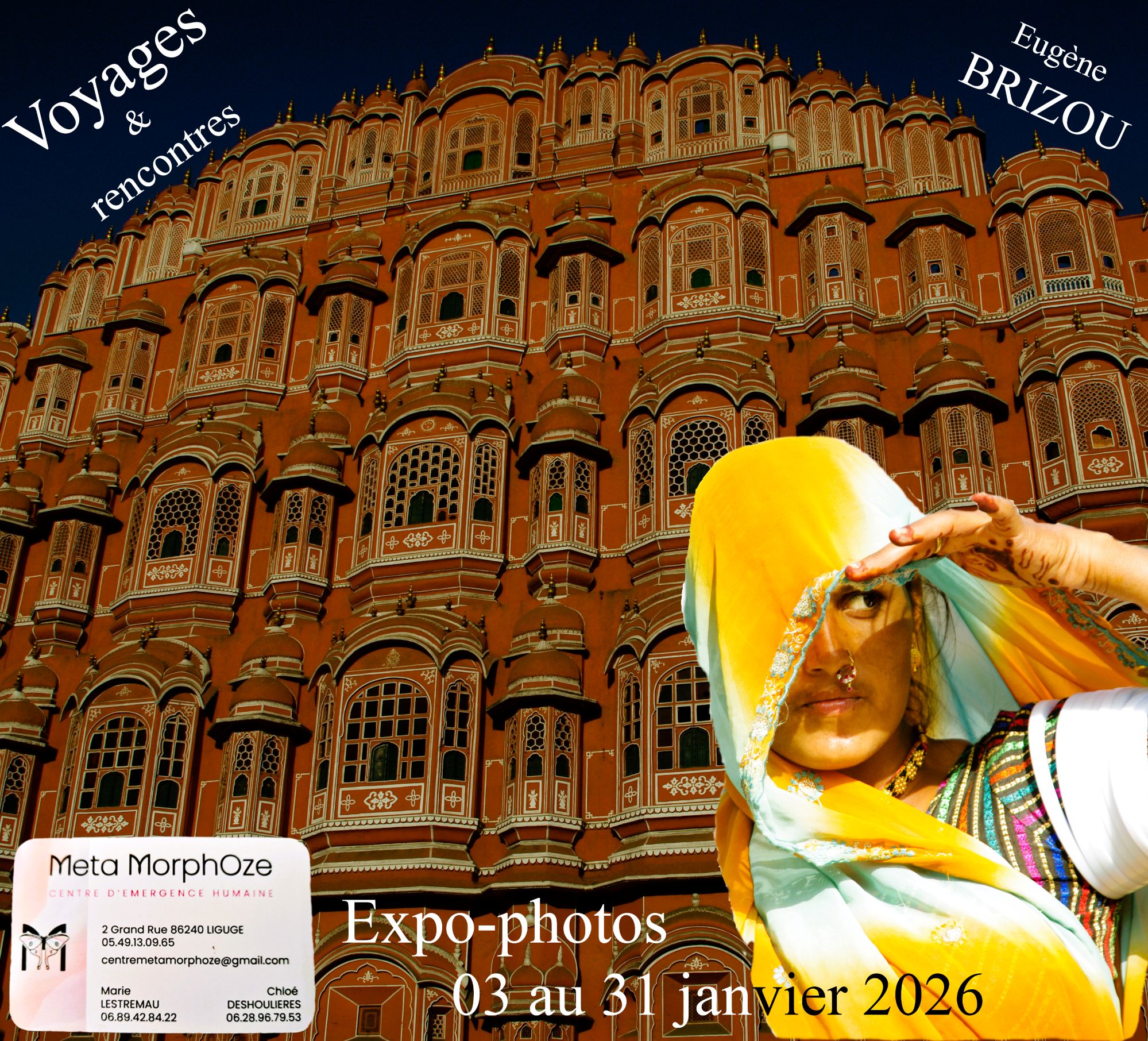 Du lundi 05 janvier 2026 au samedi 31 janvier 2026 META MORPHOZE - 2 Grande RUE - 86240 LigugéEn traversant ces dix pays je vous invite à suivre ces chemins qui m'ont offert de belles rencontres humaines et architecturales Exposition présentée chez Meta Morphoze – 2 Grande Rue 86240 Ligugé