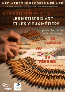 Du samedi 10 janvier 2026 au mardi 28 février 2006 Médiathèque Prosper Mérimée - 9, avenue Pasteur - 86500 MontmorillonVenez découvrir « Les métiers d’art et les vieux métiers » grâce aux photos du Club Photo et Vidéo de Saulgé