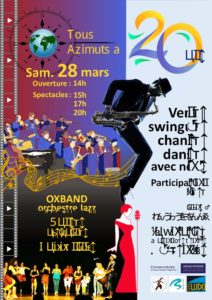 Du samedi 28 mars 2026 au samedi 28 mars 2026 Maison des Projets de Buxerolles - 48 Avenue de la Liberté - 86180 BuxerollesVenez découvrir et admirer 20 ans d'affiches créées pour les différentes activités de Tous Azimuts, choisissez votre préférée et participez à la grande tombola proposée tout l'après-midi qui sera dotée de nombreux lots: repas offerts par des restaurants, kakémonos japonais, places Futuroscope, sacs