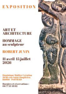 Du samedi 11 avril 2026 au dimanche 07 juin 2026 POITIERS - 50 bis rue Saint Simplicien - 86000 POITIERSHommage au sculpteur Robert Juvin (192162005). Fondateur et animateur du groupe "Mur Vivant". Il souhaite "faire fusionner tous les arts et les mettre au service de l'architectures". On pourra admirer lors de cette exposition des reliefs en verre, des dessins, une importante sculpture en bois...