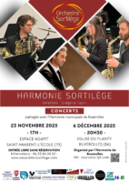 Dimanche 23 novembre 2025 - 17:00 Espace Agapit - Avenue Gambetta - 79400 Saint-Maixent-l'EcoleL’Harmonie Sortilège revient pour sa session d’automne dans les Deux-Sèvres et la Vienne, en compagnie de l’Harmonie Municipale de Buxerolles ! Direction : Grégoire Tapin et Emilie Castagnet