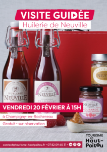 Vendredi 20 février 2026 - 15:00 Neuville-de-Poitou - 2 rue Robert Schuman - 86170 Neuville-de-PoitouL’Huilerie de Neuville vous ouvre ses portes afin de vous partager leur histoire qui a débuté en 1850, vous faire (re)découvrir leur savoir-faire et leur production.