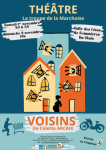 Samedi 01 novembre 2025 - 20:30 Salle des Fêtes de Sommières du Clain - route de Gençay - 86160 Sommières du Clain"Voisins", une pièce de Colette Arcaix, interprétée par la troupe de théâtre du Centre Culturel de La Marchoise.