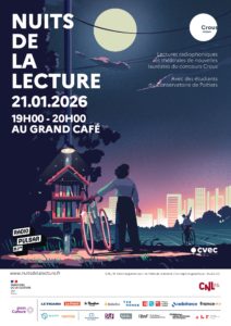 Mercredi 21 janvier 2026 - 19:00 Cafétéria Le Grand Café du Crous (Maison des étudiants) - 1 rue Neuma Fechine Borges (bâtiment A6) - 86000 PoitiersLe Crous et Radio Pulsar participent aux Nuits de la lecture 2026 ! Découvrez les univers des trois nouvelles lauréates du concours artistique du Crous, interprétées par des étudiant·es en théâtre au Conservatoire de Poitiers et accompagné·es par un dispositif immersif musical et sonore.