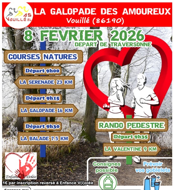 Rens : inscription https://galopade-des-amoureux-2026.onsinscrit.com/accueil.php https://www.asvouille.com