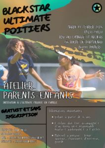 Mardi 14 avril 2026 - 17:30 Gymnase Saint Nicolas - 156 route de Parthenay - 86000 PoitiersLe 14 Avril, le BlackStar ultimate organise un atelier parents-enfants afin de permettre aux familles de venir passer un bon moment sportif tout en découvrant l'ultimate frisbee. 🙏 L'atelier est gratuit et sans inscription!