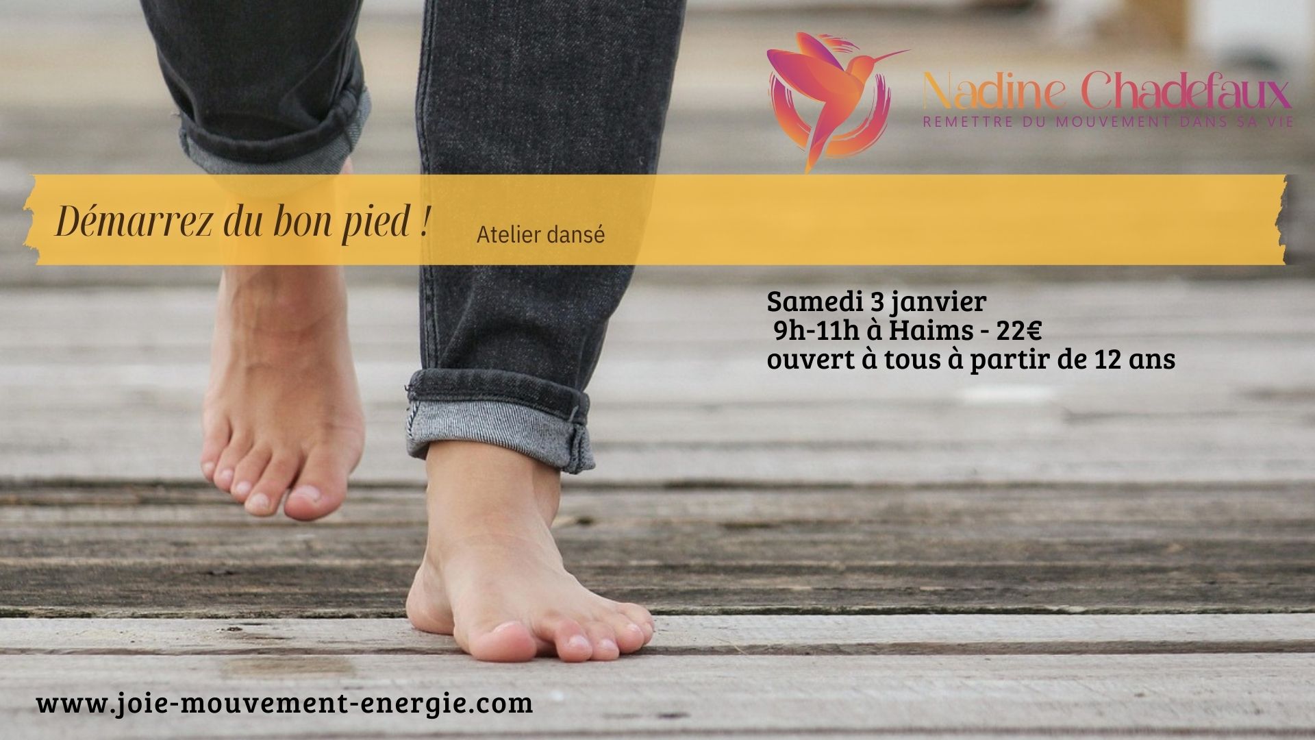 Samedi 03 janvier 2026 - 09:00 Salle des Fêtes - Route de Bethines - 86310 HaimsAtelier dansé de rentrée ! 2 heures pour réveiller ton énergie, relancer ta créativité et donner un élan vibrant à ton année 2026! Un mélange inspirant de danse libre & guidée et de pratiques créatives, porté par des playlists variées inspirantes. Pas de niveau requis. Accessible à partir de 12 ans.