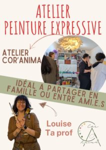 Dimanche 08 mars 2026 - 10:00 Atelier Coranima - 49 rue de la Matauderie - 86280 Saint-Benoît1h30 de peinture expressive à découvrir en solo, en famille ou entre ami·e·s. Un temps créatif, ludique et sans écran pour expérimenter la couleur, s’exprimer librement et partager un moment complice. Propositions artistiques accessibles à tou.te.s, dans une atmosphère chaleureuse et bienveillante